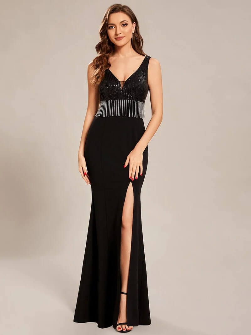Source : www.ever-pretty.comCharming Black Prom Dresses Sweetheart Sequined Strapless Illusion